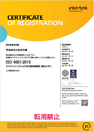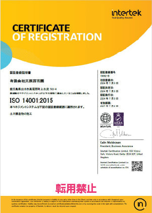 有限会社天辰百花園は、変化する環境において、様々な課題に柔軟に対応し、顧客満足に努め、事業継続を確実にするため、国際規格に適合した3つの認証を取得しております。