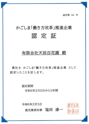 令和6年2月 かごしま「働き方改革」推進企業に登録していただきました